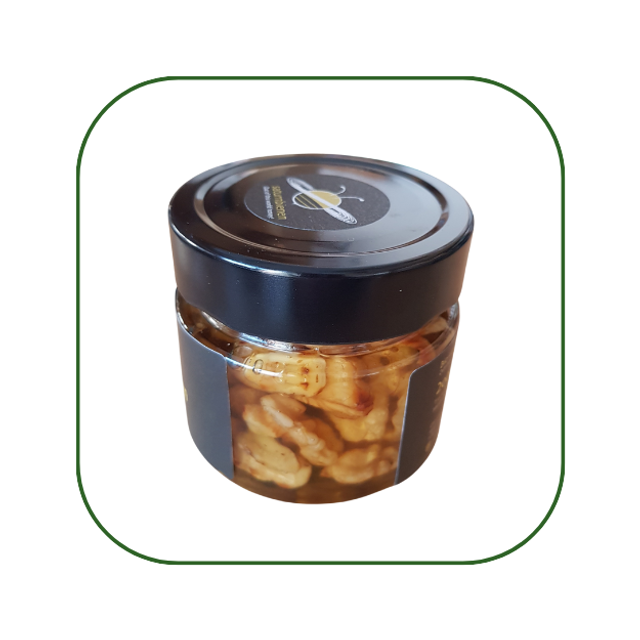 Leicht geröstete Bio-Walnüsse eingelegt in Bio-Blütenhonig.